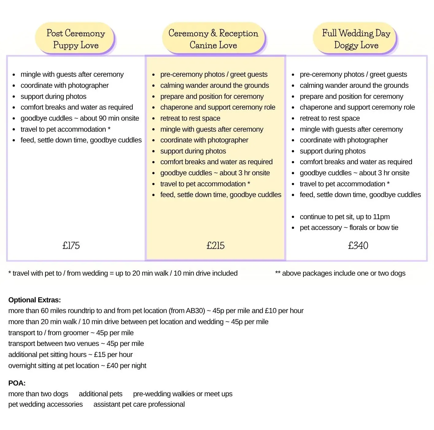Wedding Pet Sitting & Chaperone Packages and Pricing